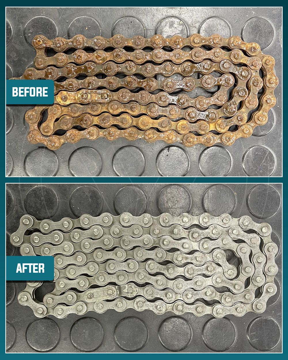 YOGIYA provides a Before and After comparison of bike parts that were serviced; looks almost new, with a noticeable improvement in function and smoothness.